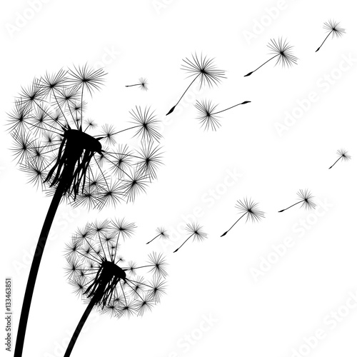 black silhouette of a dandelion on white background