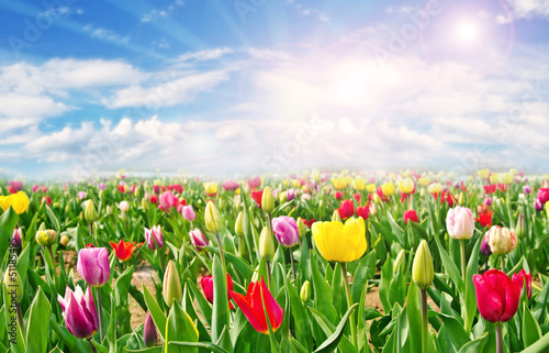 Frühlingserwachen: Bunte Tulpenvielfalt und blauer Himmel
