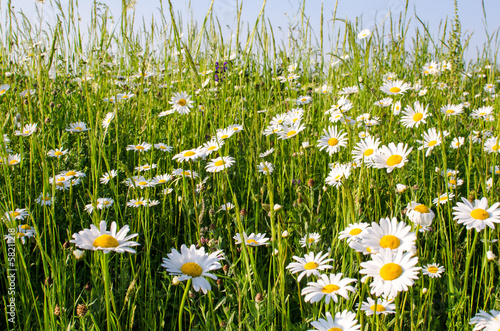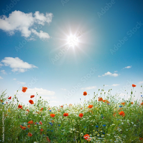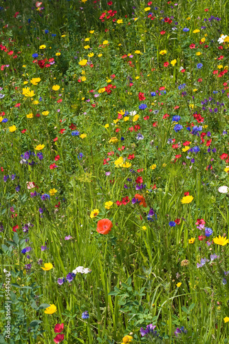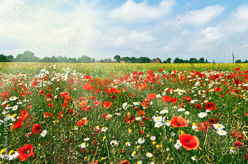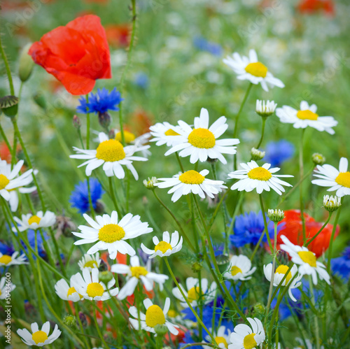 Frühlingswiese mit Margeriten, Kornblumen und Klatschmohn