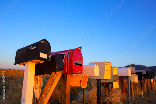 Grunge mail boxes in a row at Arizona desert