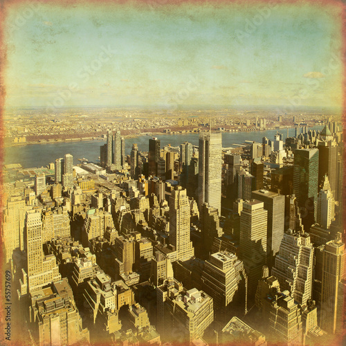 New York City Manhattan aerial view. Grunge and retro style.