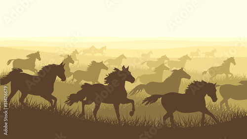 Horizontal illustration herd of horses.