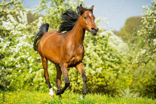 Arabian foal running in red poppy field