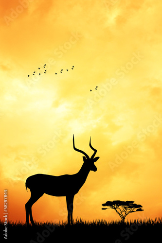 Giraffe on savanna. Safari in Serengeti, Tanzania, Africa